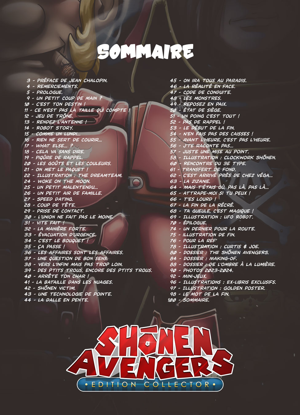 Pour répondre à l’engouement des nouveaux lecteurs et faire patienter les fans en attendant la sortie du tome 2, actuellement en cours de réalisation, SHÕNEN AVENGERS fait son grand retour. Rééditée en ÉDITION COLLECTOR chez les éditions Pulse en décembre 2025, cette version enrichie propose 12 pages inédites, offrant une nouvelle expérience aux amateurs de cet hommage culte aux héros des années 80.